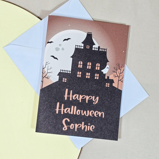 Personalised Halloween Card with Haunted House Design - Happy Halloween Card - Trick or Treat Card