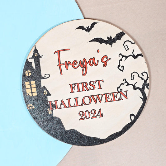 Personalised Halloween Sign - Name's First Halloween - Baby's 1st Halloween Decoration - Baby Keepsake Milestone