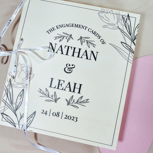 Personalised Engagement Card Book - Custom Card Holder with Couple's Names and Date - Customised Engagement Cards Organiser - Engagement Keepsake