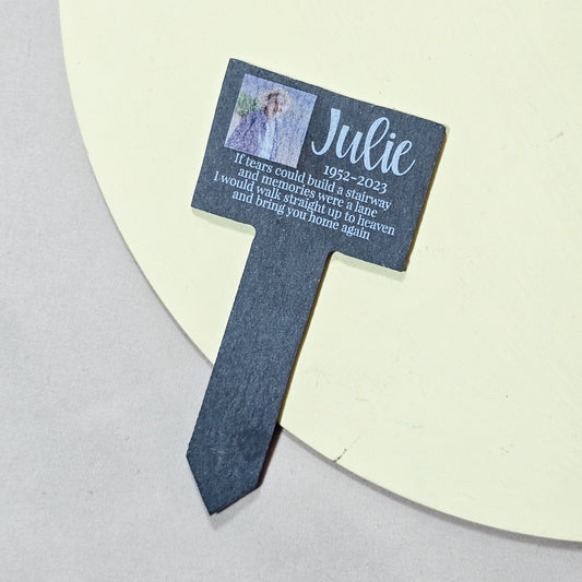 Personalised Memorial Slate Stake | Custom Grave Marker | Photo Tribute | Outdoor Memorial | Remembrance Stake | Garden Plant Memorial