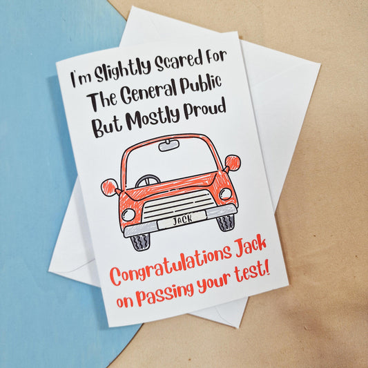 Personalised Passed Driving Test Card - Funny Congratulations Card with Custom Name Car - New Driver Gift - Custom Message Inside