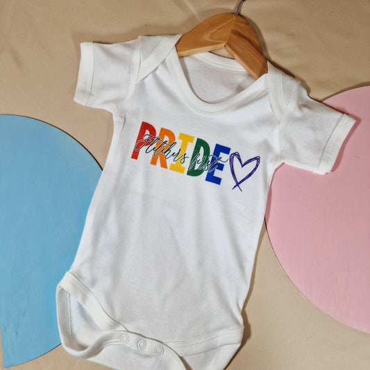 Personalised Baby Vest - "First Pride" Rainbow Design - LGBTQ+ Baby Clothing - Custom Pride Baby Outfit - Machine Washable - Newborn to 24 Months