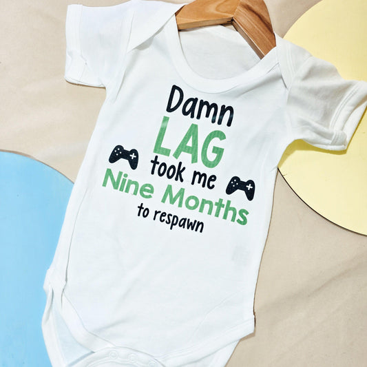 Gaming Themed Baby Vest - Funny 'Damn Lag Took Me 9 Months to Respawn' - Gamer Baby Gift - Gaming Baby vest