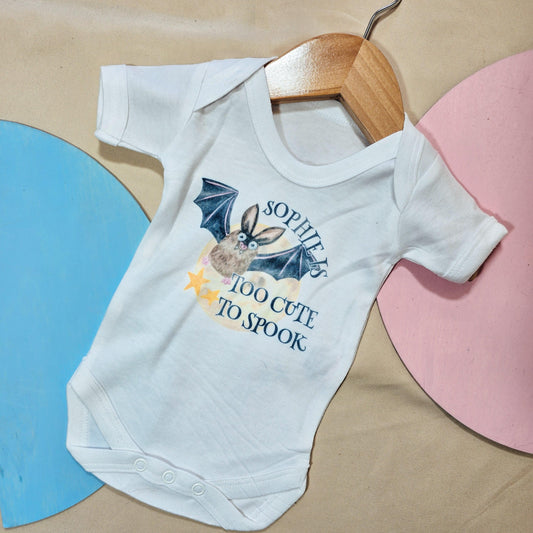 Personalised Halloween Baby Vest – "[Name] is Too Cute to Spook" – First Halloween Outfit