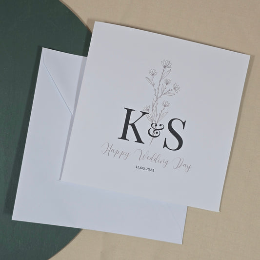 Personalised Floral Initial Wedding Card Just Married Card Wedding Date Card Wedding Day Gift Wedding Keepsake Congratulations Anniversary