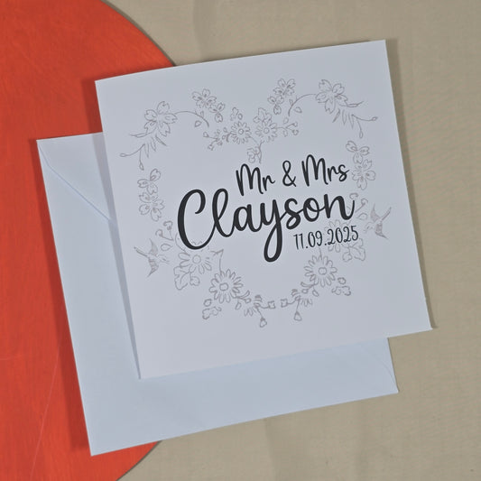 Personalised Floral Wedding Card Just Married Card Wedding Date Card Wedding Day Gift Wedding Keepsake Congratulations Card Anniversary Card