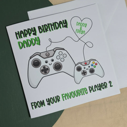 Gamer Daddy Birthday Card | Personalised Daddy Card | Player 2 Card | Greetings Card | Personalised Birthday Card Greetings Card for Dad