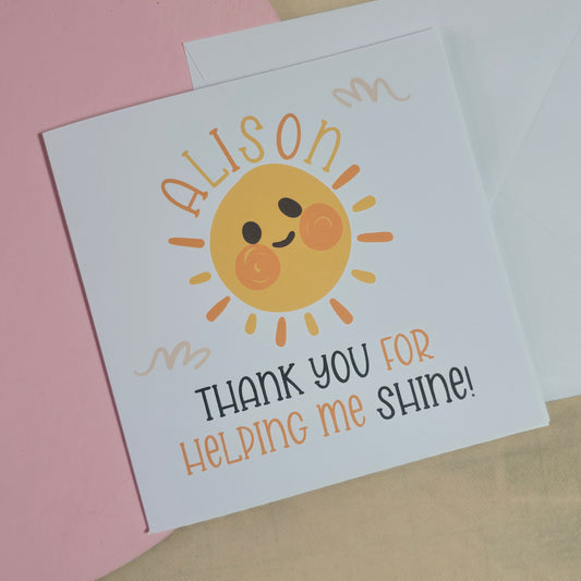 Helping me Shine Card | Key worker card | School Leaving Card | Funny Nursery Card | Nursery Leavers Card Childminder Card Thank you school