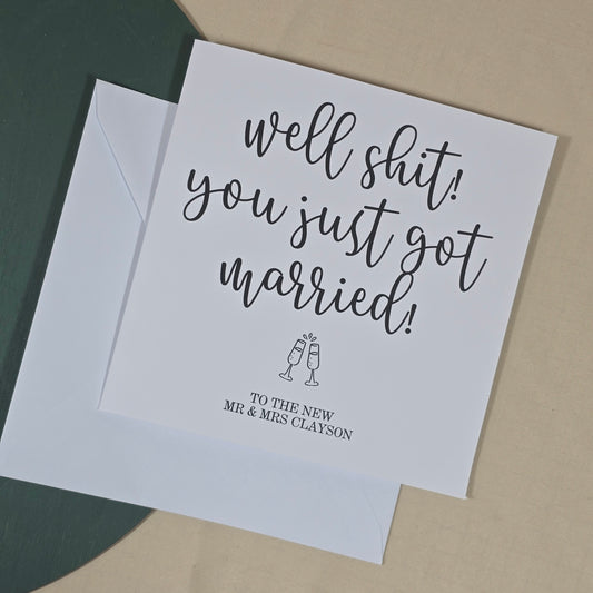 Personalised Funny Wedding Card | Well shit Card | Just Married Card Wedding Day Gift Wedding Keepsake Congratulations Anniversary