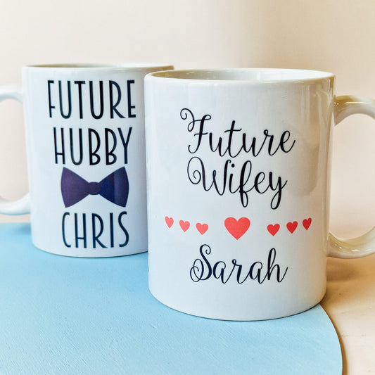 Personalised Future Wifey & Future Hubby Mugs - Custom Engagement Gift - Couple's Mugs with Names - Wedding Gift Idea - Matching Mugs