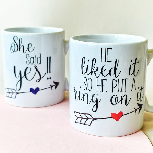 Personalised Engagement Mugs – 'He Liked It So He Put a Ring On It' and 'She Said Yes' – Future Mrs Mug – Future Mr & Mrs Gift