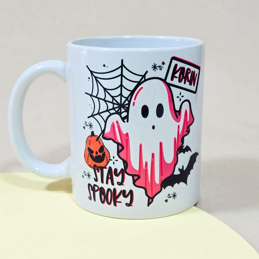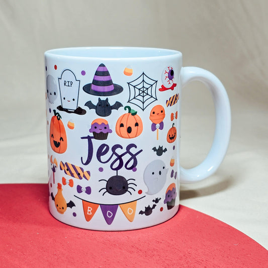 Personalised Halloween Mug with Pink Ghost Design - Spooky Season Cup - Cute Halloween Mug