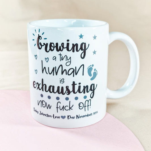 Funny Personalised Pregnancy Mug - "Growing a Tiny Human Is Exhausting" - Funny Maternity Gift - New Mum Gift - Funny Pregnancy Mug
