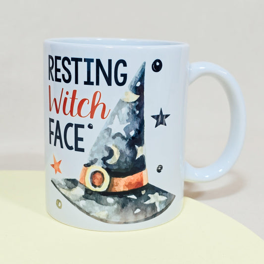 Resting Witch Face Halloween Mug – Funny Witch Hat Design - Spooky Coffee Mug - Perfect Halloween Gift