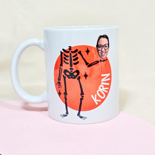 Personalised Skeleton Photo Mug – Custom Halloween Face Mug – Funny Spooky Gift for Halloween Lovers
