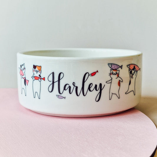 Personalised Cat Bowl with Name - Custom Pet Food or Water Dish - Cute Cat Design - Perfect Gift for Cats & Kittens - Ceramic Bowl
