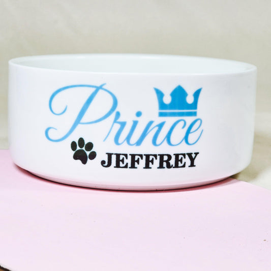 Personalised Pet Bowl for Prince - Custom Dog Bowl - Cat Food Bowl - Customised Pet Dish - Crown Pet Accessory