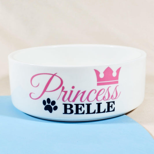 Personalised Pet Bowl - "Princess Name" with Crown Design - Custom Dog Bowl - Cat Food Bowl - Customised Pet Dish - Crown Pet Accessory